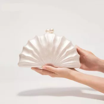 Ivory Pearl Shell Clutch Bag – Acrylic Evening Purse for Parties & Weddings