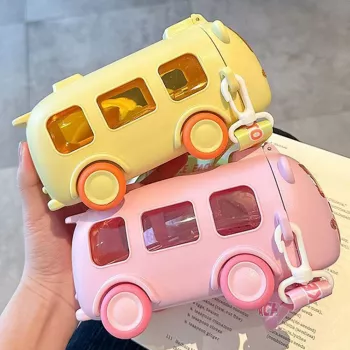 Kids Cartoon Bus Water Bottle with Straw and Adjustable Strap – Leakproof 17oz